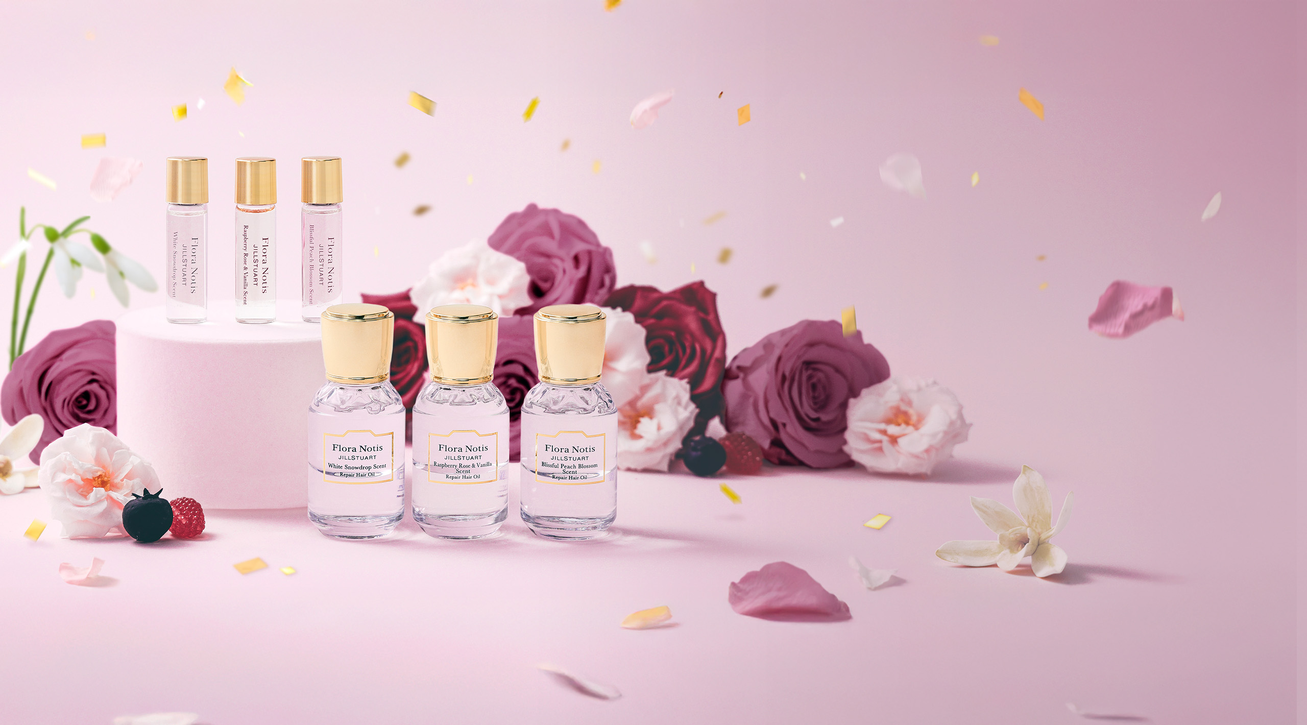 花束を抱いているような幸福感に満たされて。Flora Notisが紡ぐのは、つみたての生花が放つフレッシュで上質な香り。溢れるほどの花々を1/1000に凝縮※して、すべての製品に天然香料を配合しました。花それぞれの個性と、季節の訪れが感じられる11種の香りを揃えています。