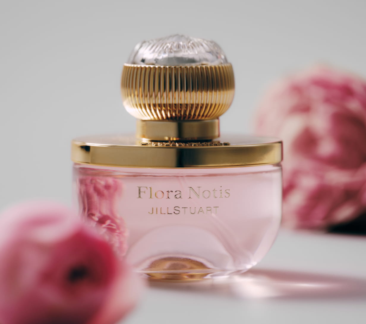 花束を抱いているような幸福感に満たされて。Flora Notisが紡ぐのは、つみたての生花が放つフレッシュで上質な香り。溢れるほどの花々を1/1000に凝縮※して、すべての製品に天然香料を配合しました。花それぞれの個性と、季節の訪れが感じられる11種の香りを揃えています。