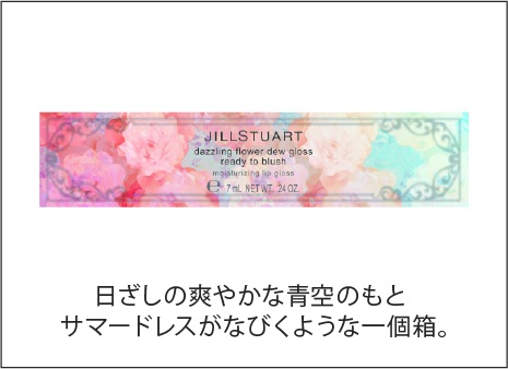 繊細なきらめきとうるおいで、透明感を宿す。 花露のようにぷっくりツヤやかに包むリップグロス。