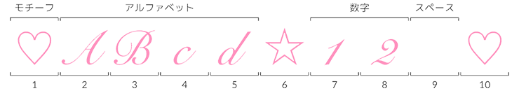 モチーフ、テキスト(アルファベット大文字・小文字、数字)をあわせて10文字以内。
