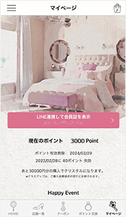 Jewelry Room アプリの【マイページ】で随時累計ポイントを確認できます。